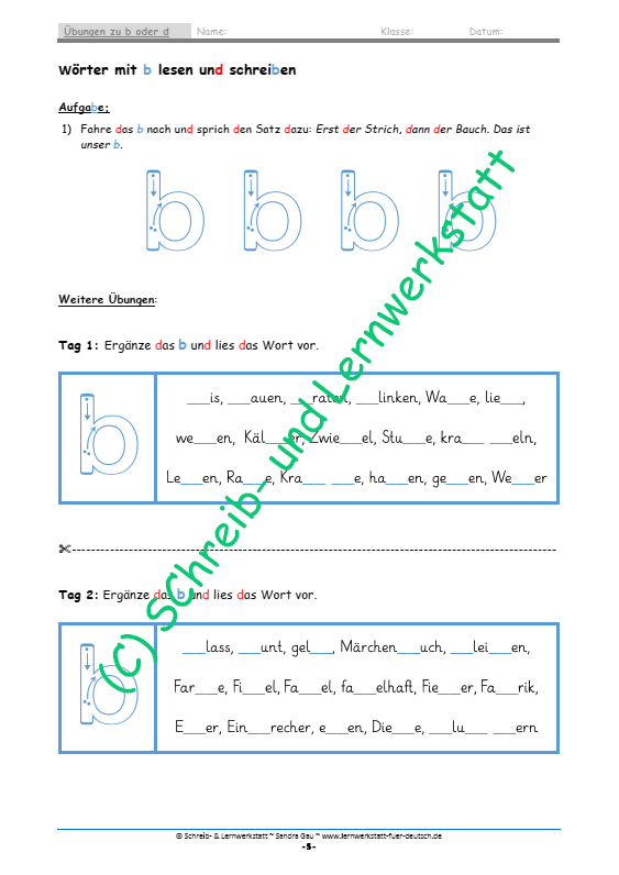 Übungen zu b oder d – Lernmaterial zum sicheren Unterscheiden der Buchstaben