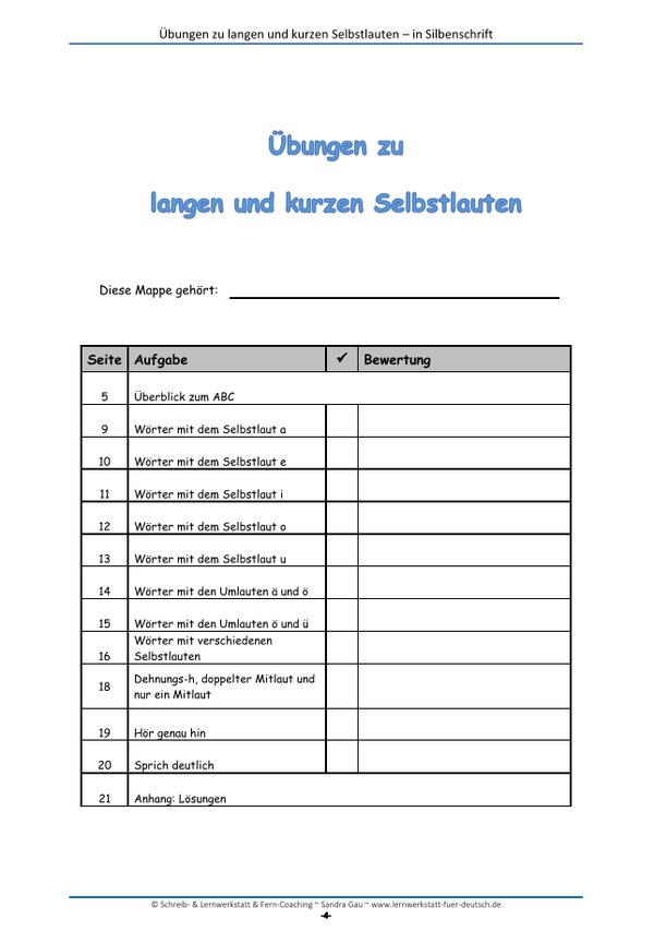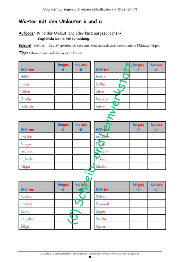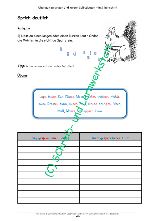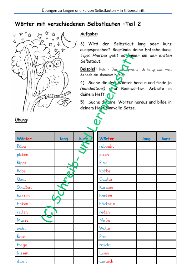 Übungen zu langen und kurzen Selbstlauten - in Silbenschrift
