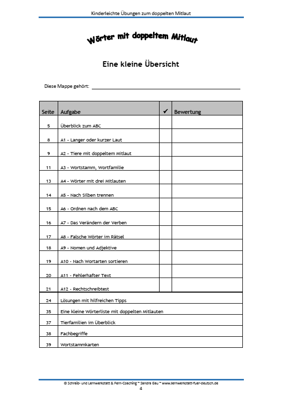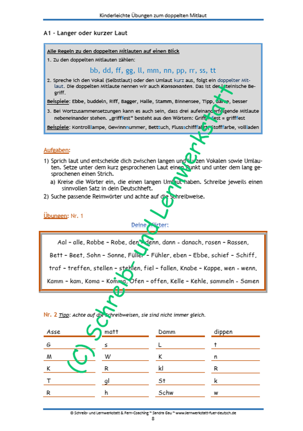 - Übungen zu Wörtern mit Doppelkonsonanten