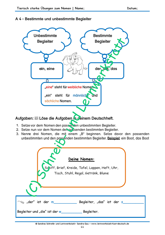 In diesem Lernmaterial steht Wortart Nomen mit seinen Begleitern im Vordergrund und werden hier intensiv geschult.
