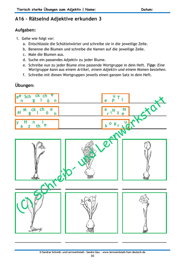 Das umfangreiche Lernmaterial bietet Übungen rund um das Adjektiv. Es werden Gegensätze gesucht, in allen drei Stufen gesteigert, Wortgruppen gebildet, Sätze verfasst, zusammengesetzte Wörter kennengelernt und angewandt, Dinge beschrieben, in poetischen Zeilen sowie anderen Texten gesucht und einiges mehr- verpackt in Rätseln, Zuordnungsaufgaben, Lückentexten und spielerisch.