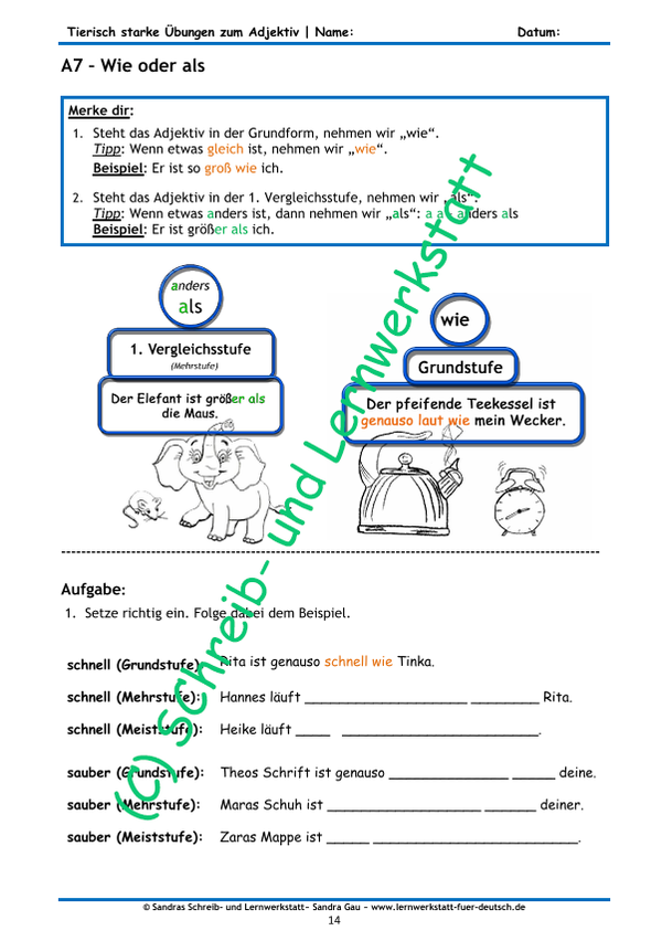 Tierisch starke Übungen zum Adjektiv