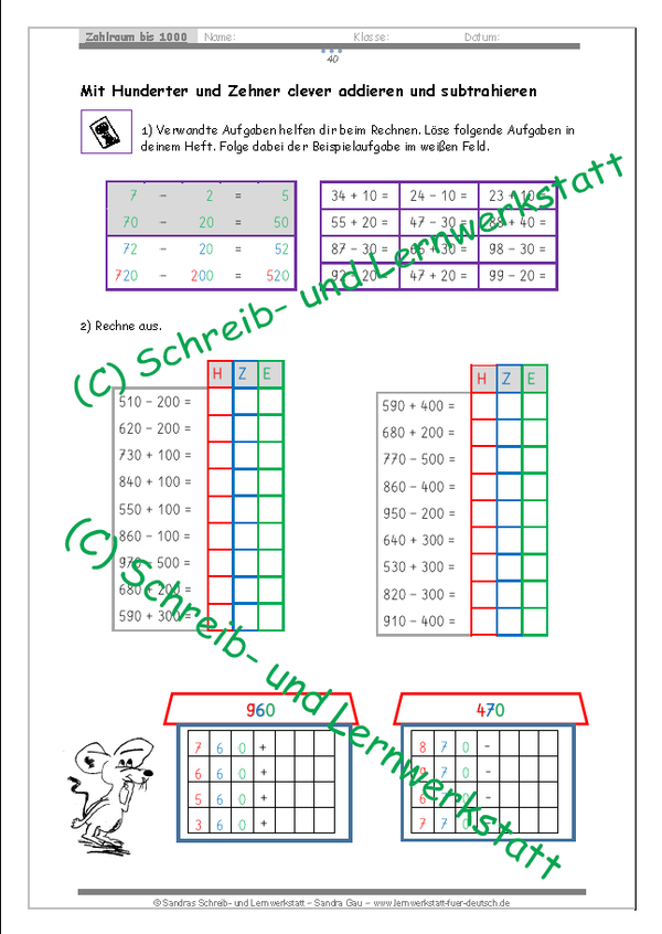 Übungen zum Zahlenraum bis 1000