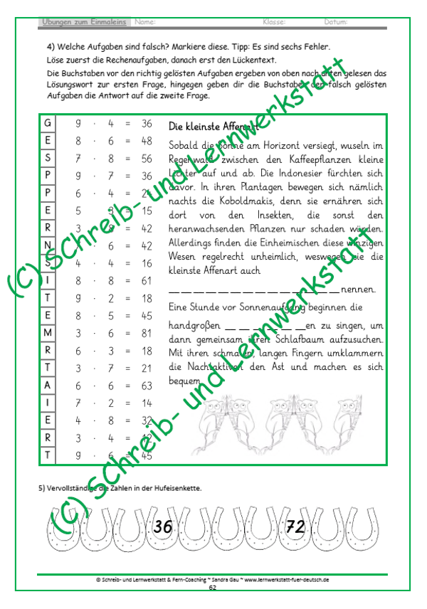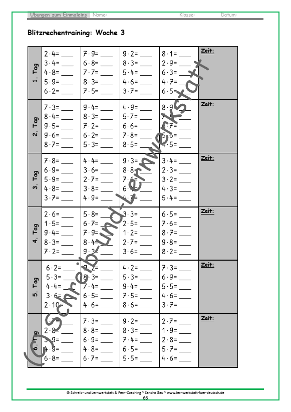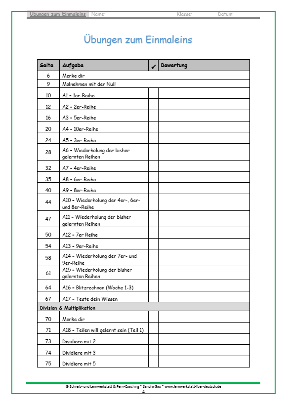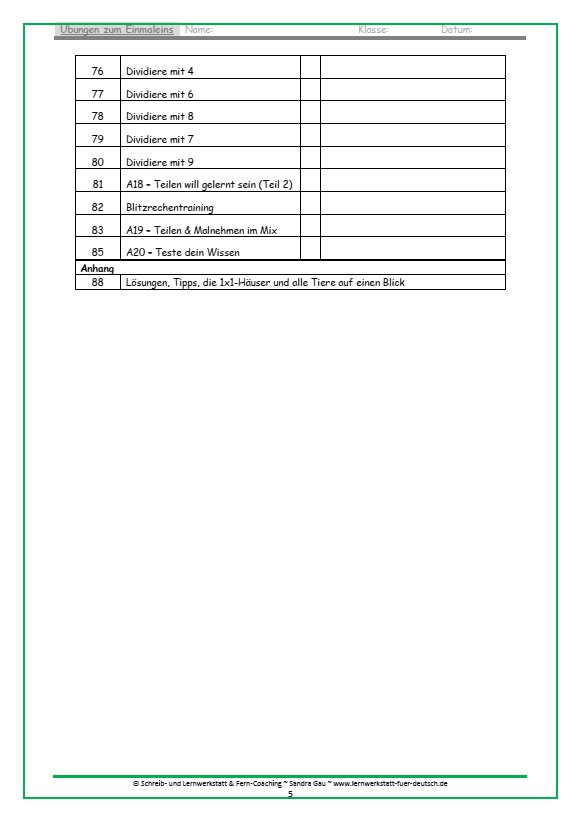 - Einmaleins-Tabelle, Trainingsseiten & Lösungen