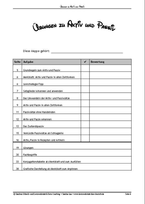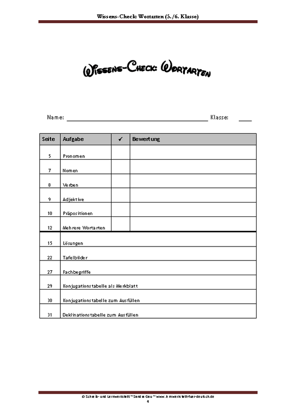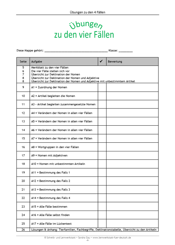 Die vier Fälle werden intensiv unter die Lupe genommen, die Wortarten getestet, mit den Präpositionen Wortgruppen und Sätze gebildet sowie Aktiv und Passiv tiefgründig differenziert.