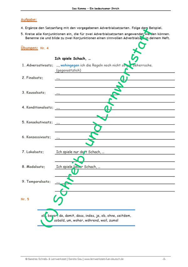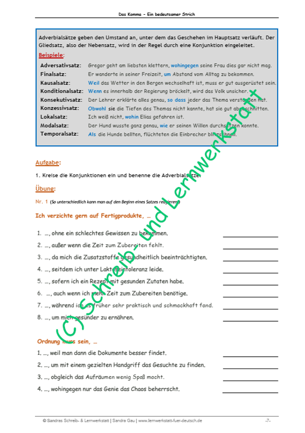 Abwechslungsreiche Übungen zu den Adverbialsätzen für nachhaltiges Lernen