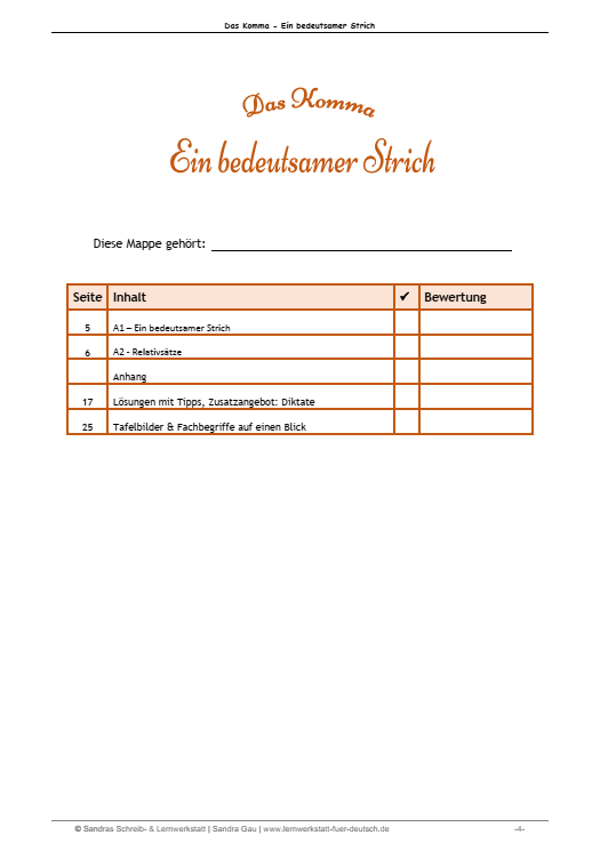 Diese Lerneinheit gehört ebenso zu „Das Komma - Ein bedeutsamer Strich".