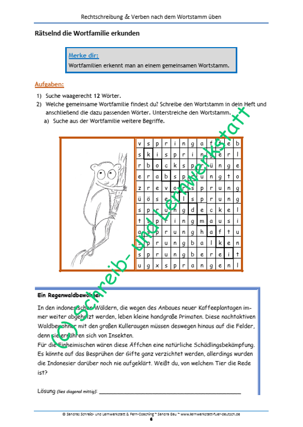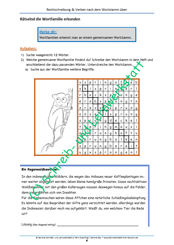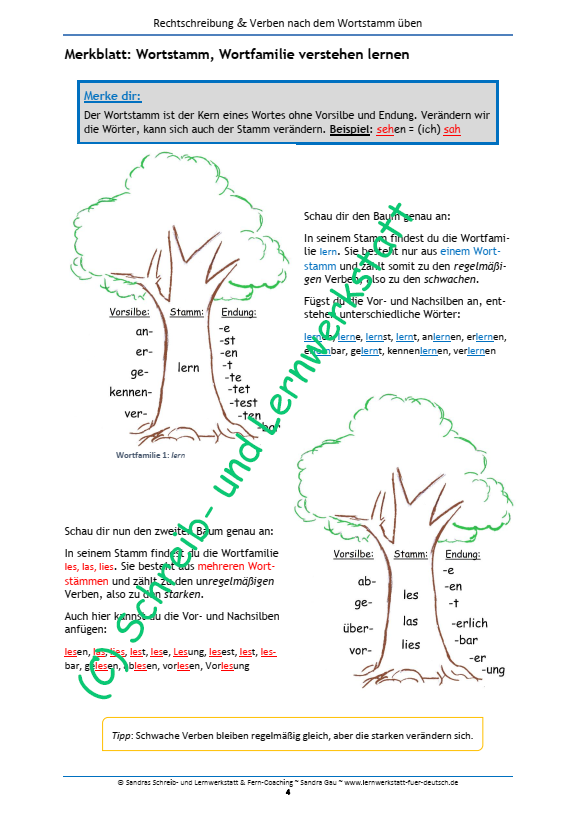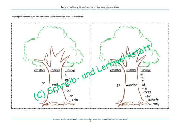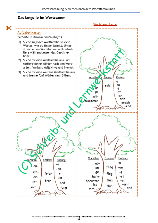 Rechtschreibung und Verben nach dem Wortstamm üben