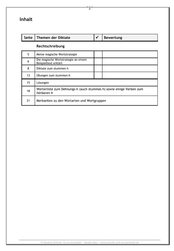 Mit effektiven Diktaten für Wörter mit dem stummen h und dem Dehnungs-h praxisnah üben, um sicher schreiben zu lernen, darauf liegt in dem Lernmaterial der Fokus.