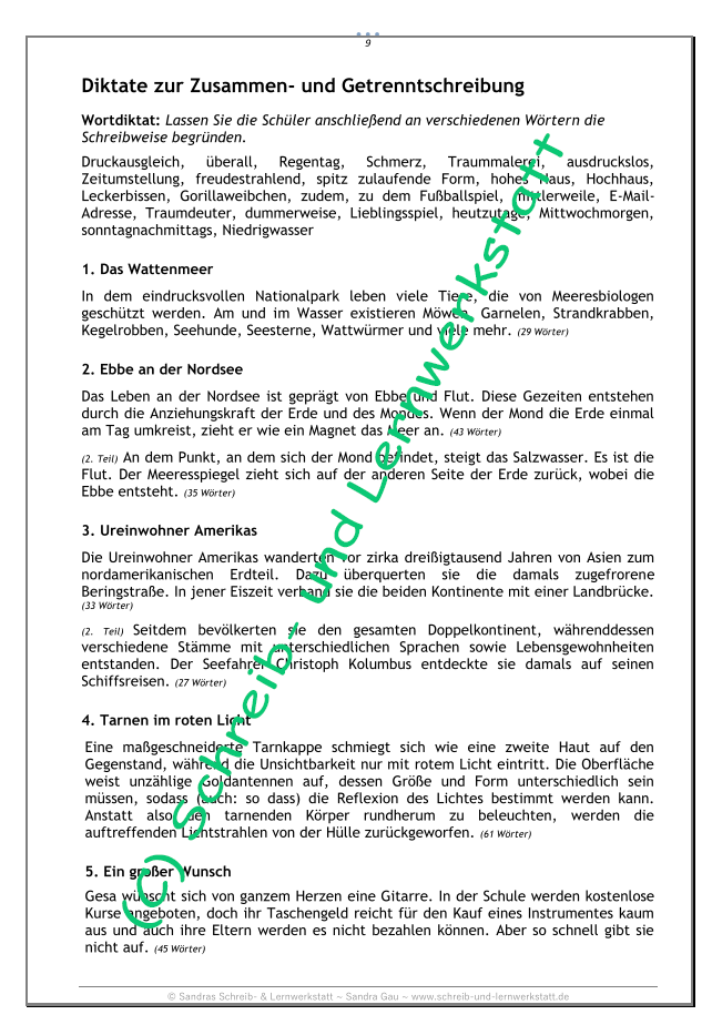 Mit effektiven Diktaten für Wörter mit Zusammen- und Getrenntschreibung praxisnah üben, um sicher schreiben zu lernen, darauf liegt in dem Lernmaterial der Fokus.