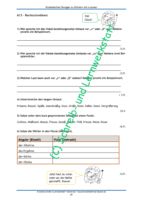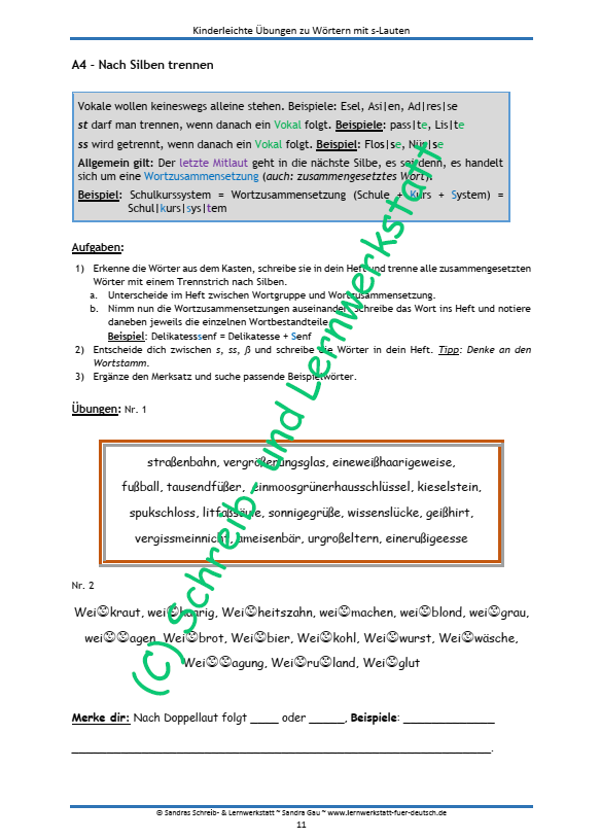- Übungen zu Wörtern mit s-Lauten
