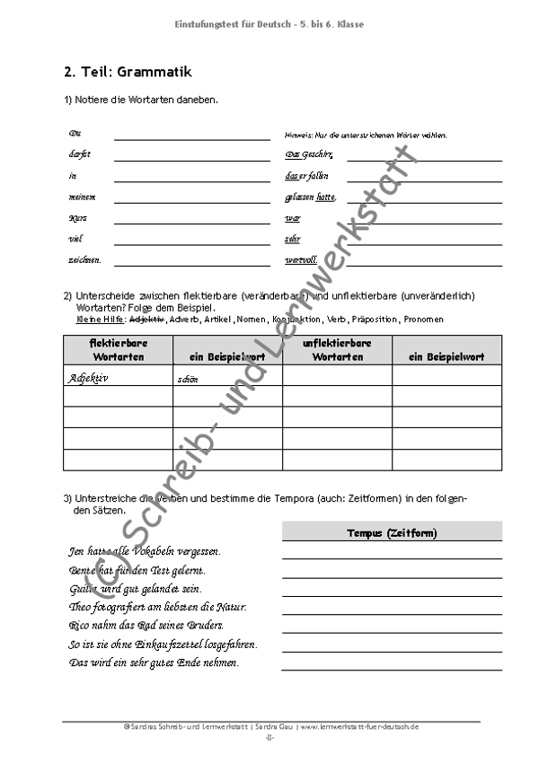 Einstufungstest für Deutsch - 5.-6. Klasse