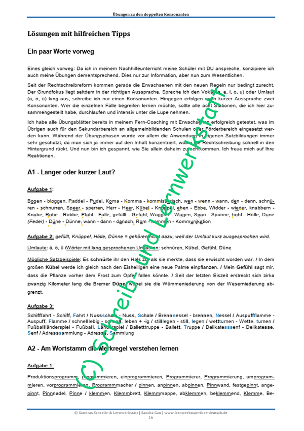 Das erprobte Lernmaterial geht den doppelten Konsonanten auf den Grund. Die Aufgabenstellungen sind in der Du-Form und richten sich an Erwachsene, die ihre Rechtschreibung für ihren Berufsalltag oder einfach für sich selbst verbessern wollen.