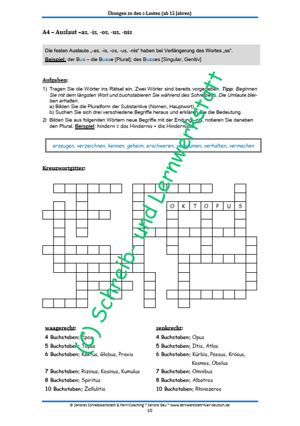 Das erprobte Lernmaterial geht den s-Laut-Wörtern auf den Grund. Es muss zwischen s, ss sowie ß entschieden werden. Die Aufgabenstellungen sind in der Sie-Form und richten sich an Erwachsene, die ihre Rechtschreibung für ihren Berufsalltag oder einfach für sich selbst verbessern wollen.