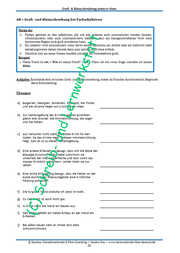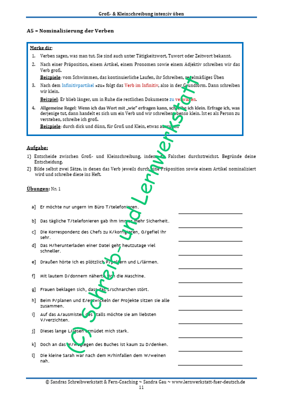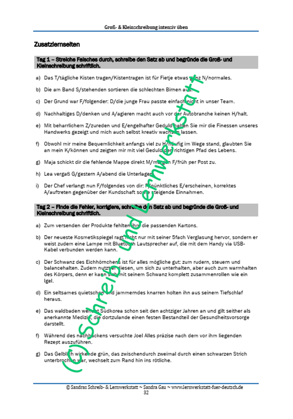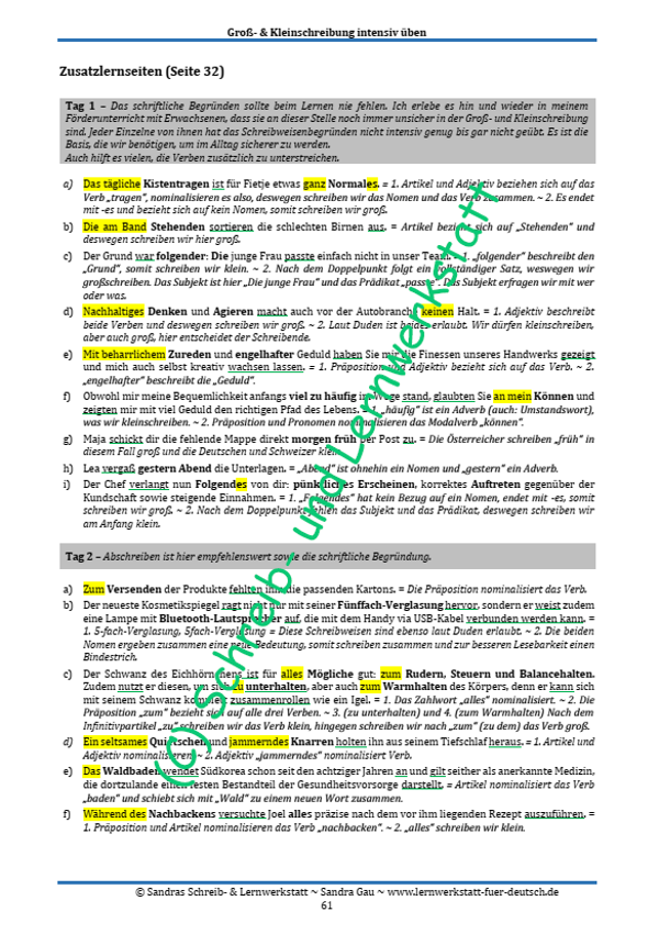 In diesem praxiserprobten, mehrfach erweiterten Lernmaterial wiederholen die Lernenden zunächst die Wortarten, da dieses Wissen die Grundlage ist, um die Rechtschreibregeln zu verstehen. Es werden Theorie, Rätsel und Wortgruppenübungen integriert, um die Nominalisierung sicher zu beherrschen. Die Arbeitsblätter „Übe nun allein“ dienen der Festigung. Durch die tägliche Aufteilung können die SuS das Erlernte regelmäßig auffrischen und dauerhaft abspeichern. Perfekt geeignet für den Deutschunterricht oder zum Selbstlernen.