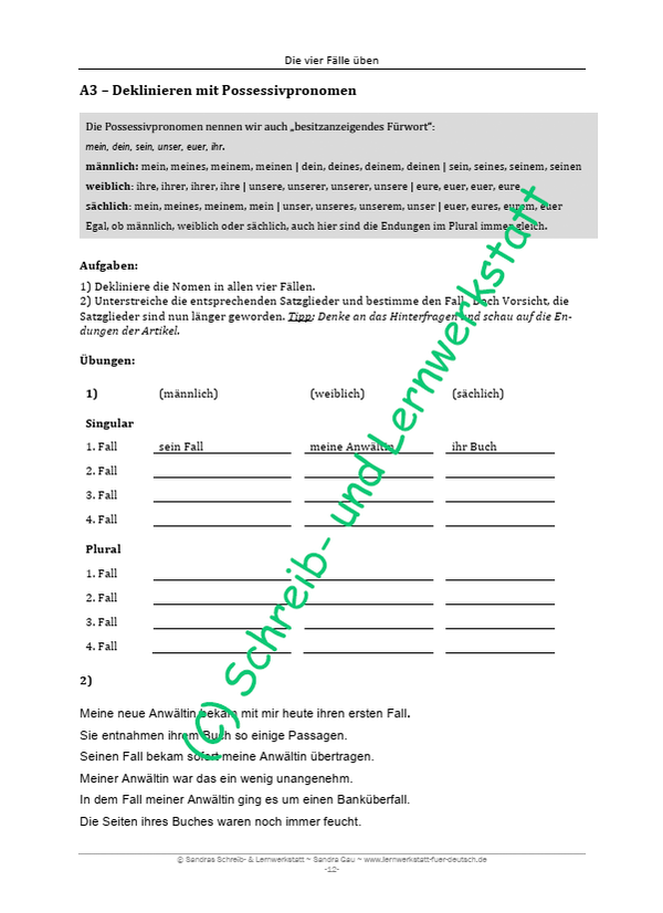 Die Lernenden üben das Deklinieren am Nomen in allen vier Fällen, sowohl in eigenen als auch in vorgegebenen Sätzen. Ziel ist, seine täglichen Korrespondenzen künftig zum Kinderspiel zu machen. Schritt für Schritt wirst du durch die vier Fälle geführt, erhältst klare Regeln und zahlreiche Beispiele zum Üben. So werden Alltagstexte und Korrespondenzen künftig zum Kinderspiel. Jetzt starten und sicherer schreiben lernen.