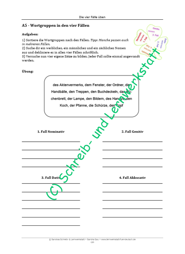 Nominativ, Genitiv, Dativ und Akkusativ – Begriffe, die man schon mal gehört hat. Doch wie sie im Einzelnen ermittelt werden und warum es nun „einen“ und nicht „ein“ heißt, können Erwachsene in diesem Lernmaterial erkunden.