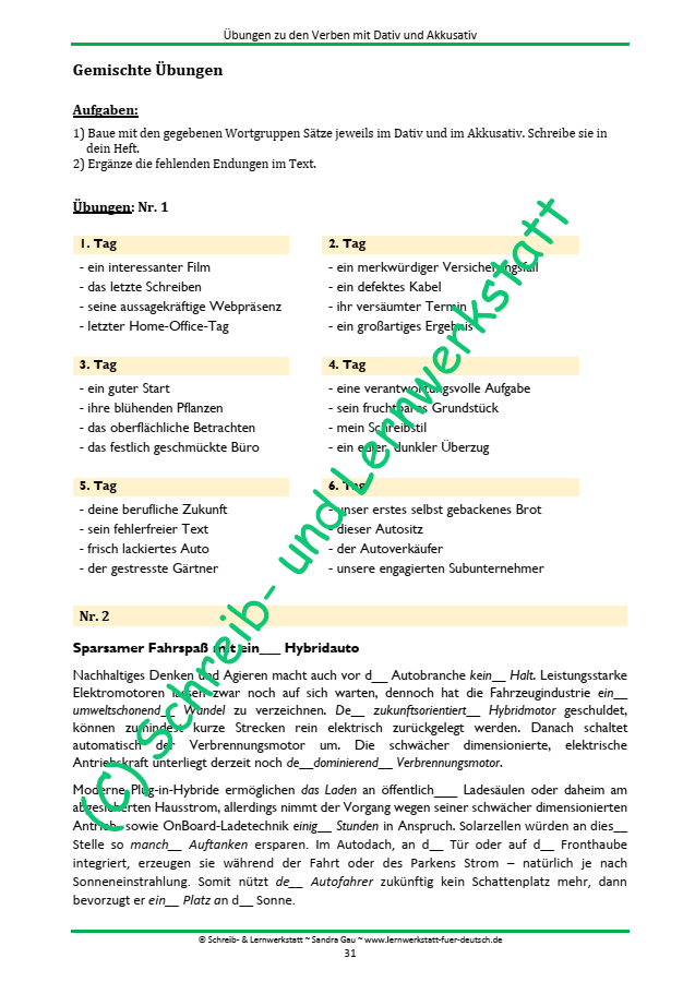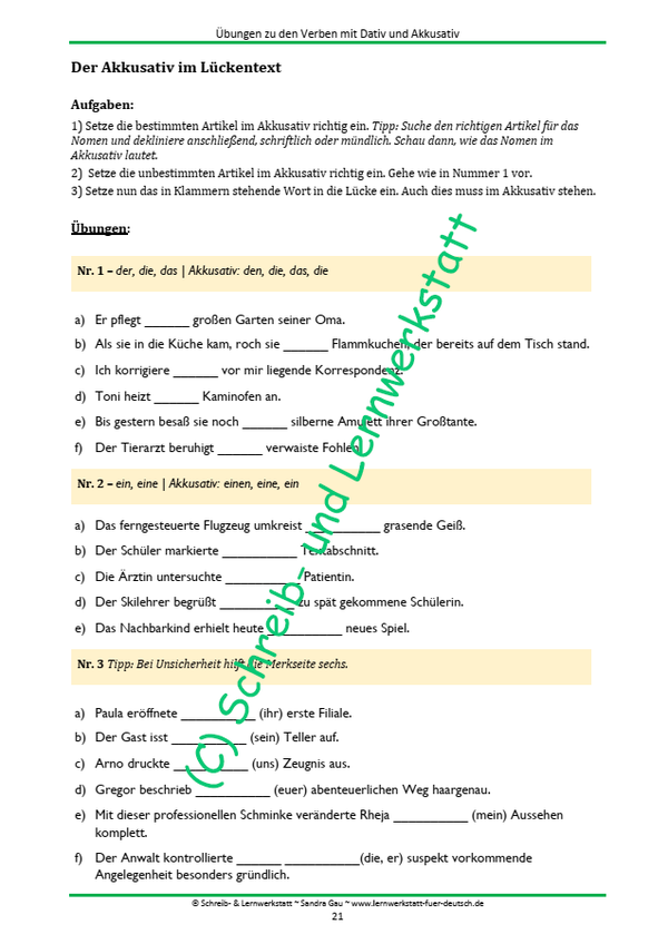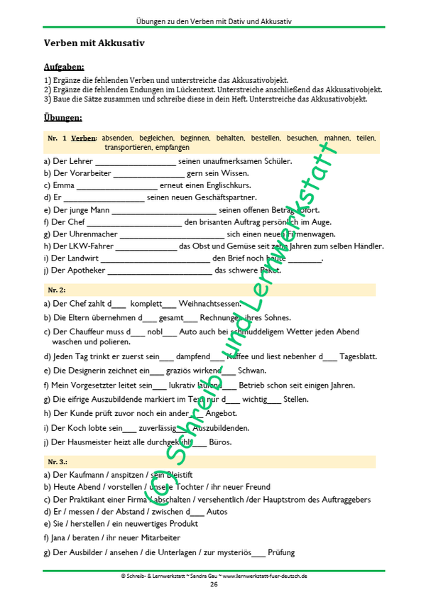 Grammatik für Erwachsene - Übungen zu Verben mit Dativ und Akkusativ