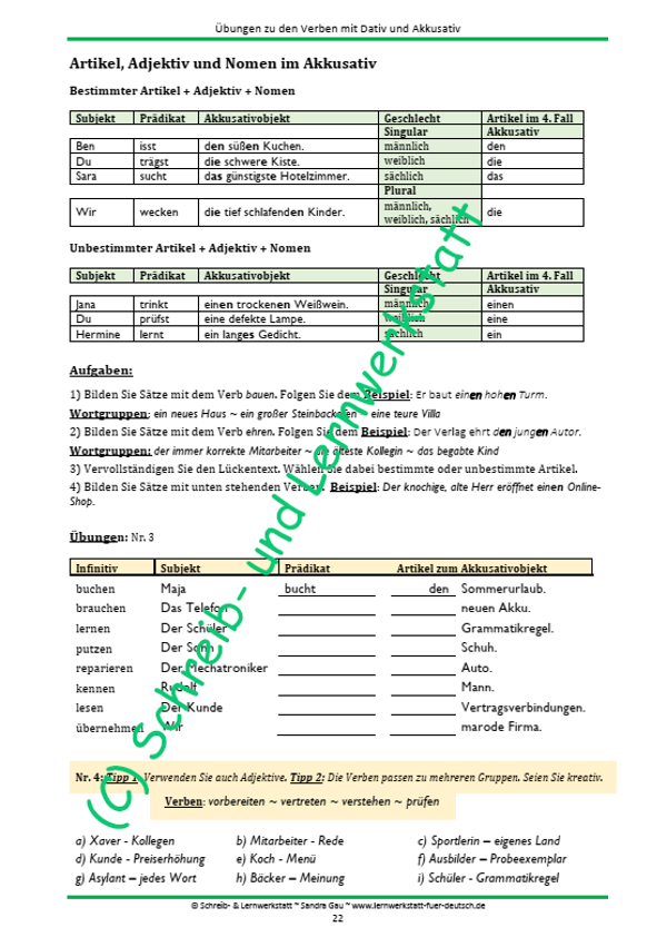Die Übungen entstanden auf Wunsch meiner erwachsenen Schüler:innen und richten sich speziell an diejenigen, die den Dativ und Akkusativ mit Blick auf die Verben sicher fokussieren möchten.