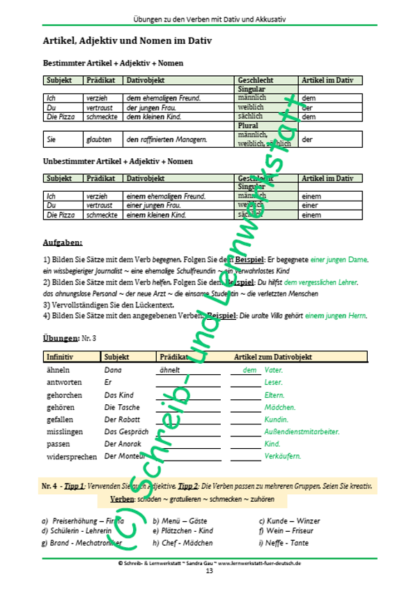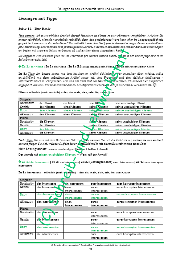 Grammatik für Erwachsene - Übungen zu Verben mit Dativ und Akkusativ (Sie)