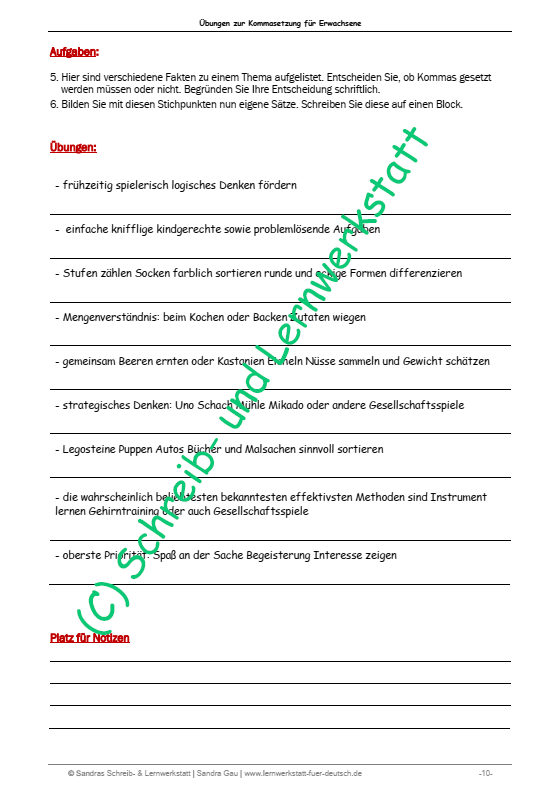 Übungen zur Kommasetzung - Aufzählungen (Sie)