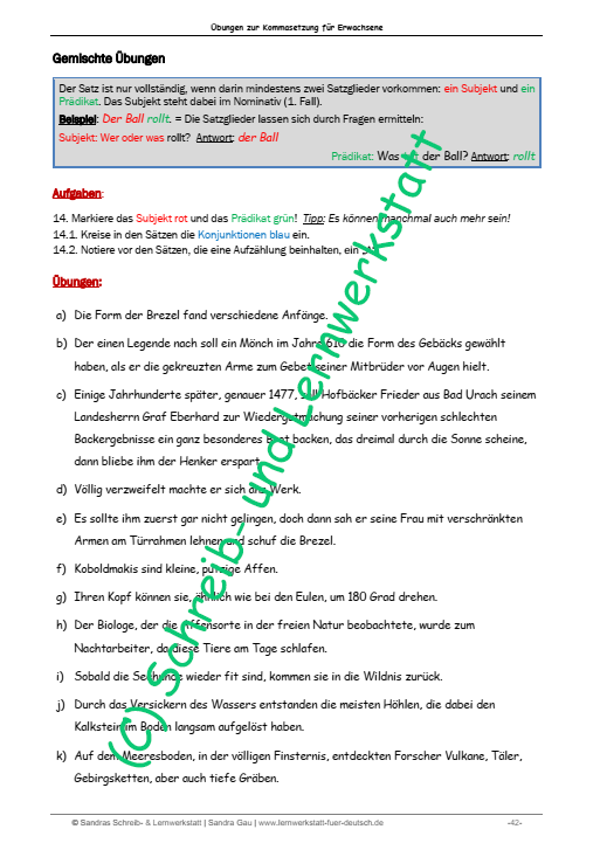 Übungen zur Kommasetzung - Subjekt und Prädikat