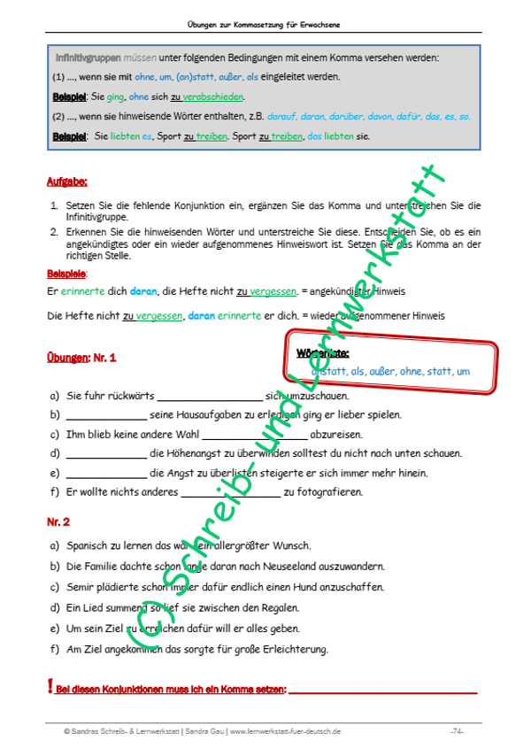 Übungen zur Kommasetzung - Infinitivsätze (Sie)