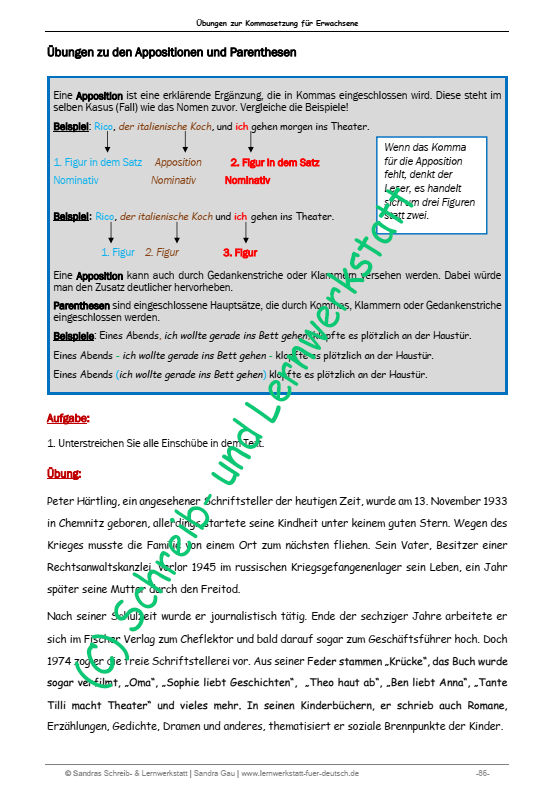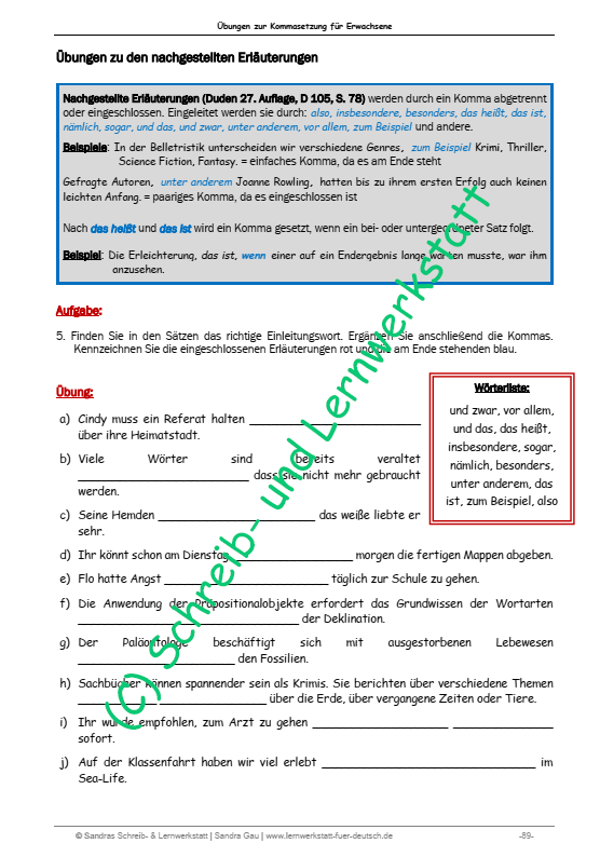 Hinweis: Hierbei handelt es sich um ein Einzelkapitel vom großen Materialpaket ,,Übungen zum Komma - Zeichensetzung für Erwachsene". Bitte Doppelkäufe meiden!