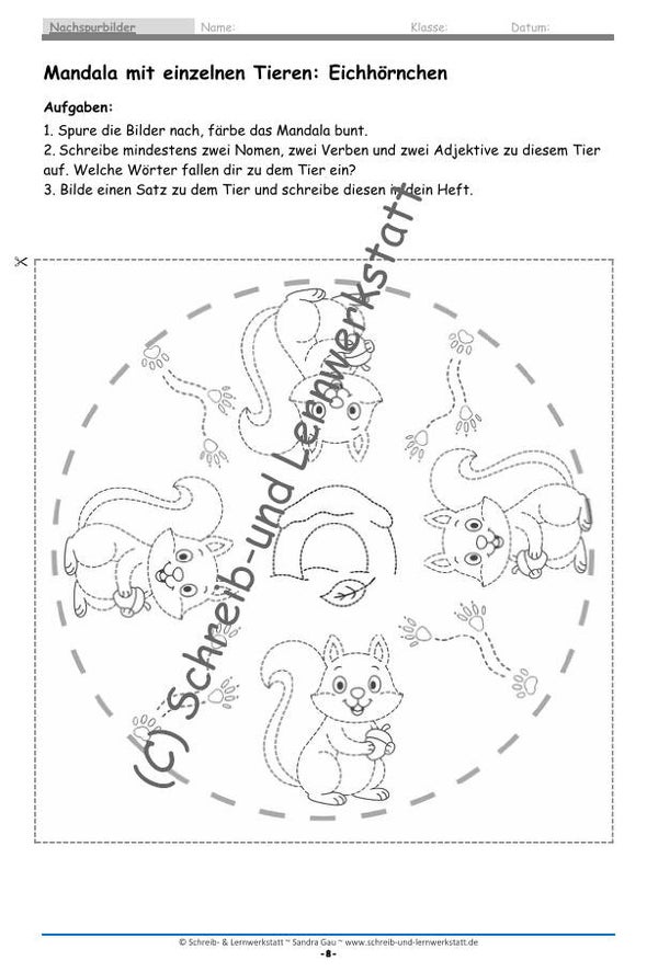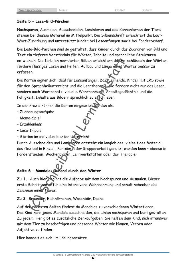 Graphomotorische Mandalas – Ruhende Tiere im Winter ist ein liebevoll gestaltetes Unterrichtsmaterial, das Feinmotorik, Konzentration und Sprachentwicklung miteinander verbindet. Kinder spuren winterliche Tiere wie Braunbär, Eichhörnchen, Waschbär und Dachs nach, malen die Motive aus und setzen sich über kleine Denkaufgaben aktiv mit den Tieren auseinander.