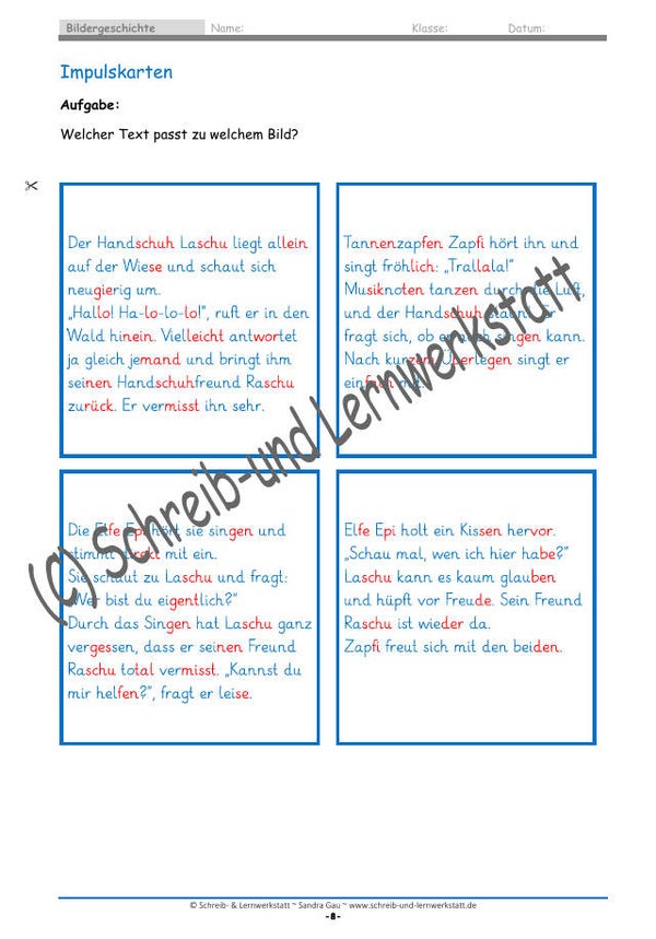 Durch die Arbeit mit den Bildergeschichten werden verschiedene Kompetenzen gefördert: