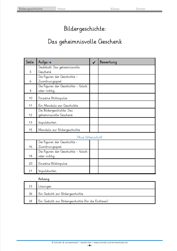✔️ eine strukturierte Bildergeschichte in mehreren Bildsequenzen