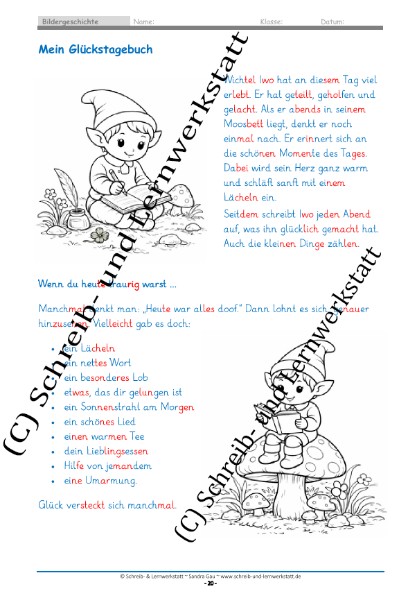 Wichtel Iwo entdeckt das Glück - Bildergeschichte für kreatives Schreiben