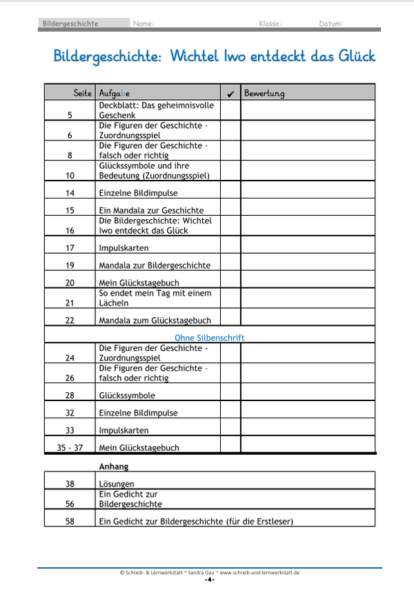 Diese liebevoll gestaltete Bildergeschichte lädt Kinder dazu ein, über Glück nachzudenken, eigene Gedanken zu formulieren und erste Geschichten zu schreiben. Gemeinsam mit Wichtel Iwo begeben sich die Kinder auf eine kleine Reise durch den Wald und entdecken dabei, dass Glück oft in ganz einfachen Momenten steckt – im Helfen, im Teilen und im gemeinsamen Lachen.